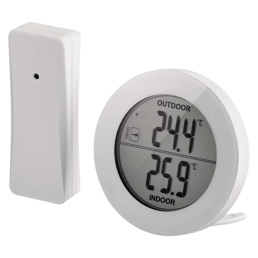 Digitální bezdrátový teploměr E0129 == 12/24 formát času: ne|barevný displej (black mask) podsvícený: ne|budík: ne|časová pásma: ne|datum: ne|dosah ve volném prostoru: až 80 m|drátová sonda k čidlu: ne|funkce stopky: ne|hodiny: ne|kalendář: ne|LED podsvícení displeje: ne|magnet na připevnění: ne|min. a max. teplota: ano|možné další čidlo: 1 (E05018)|možnost nastavení jednotky teploty: ano|možnost pověšení na zeď: ano|napájení čidla: 2× 1,5 V AAA (nejsou součástí balení)|napájení stanice: 2× 1,5 V AAA (nejsou součástí balení)|odpočet času max. od: ne|opakované buzení: ne|paměť poslední hodnoty: ne|přenosová frekvence: 433 MHz|prodejní obal: 1 ks, krabička|provedení teploměru: bezdrátový|rozměr čidla: 31 × 19 × 100 mm|rozměr hlavní jednotky: 91,8 × 20 × 91,8 mm|síťový adaptér: ne|teplotní index: ne|teplotní výstraha: ne|trend teploty: ano|trend tlaku: ne|trvalé podsvícení: ne|velikost displeje: ? 64 mm|venkovní teplota: -30 °C až +50 °C, rozlišení 0,1 °C|venkovní vlhkost: ne|vnitřní teplota: -10 °C až +50 °C, rozlišení 0,1 °C|vnitřní vlhkost: ne