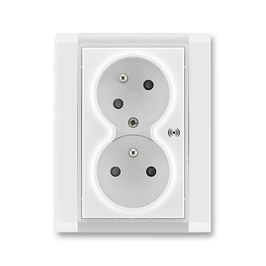 Time® 5583F-C02357 01 zásuvka dvojnásobná s natoč. dutinou, s přep. ochr., s akustickou sig.barva bílá / ledová bílá ABB