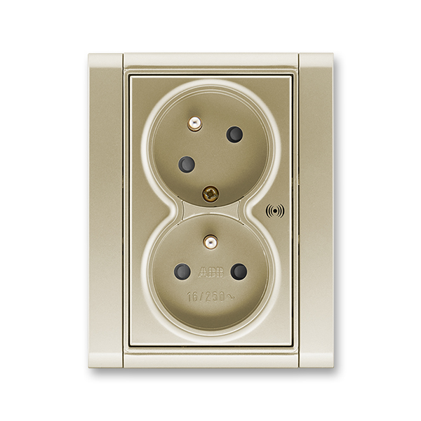 Zásuvka 2násobná s natoč. dutinou, s přep. ochr., s akustickou sig.; šampaňská Vhodné pro designy z vypínačových řad ABB : F Objednací číslo : 5583F-C02357 33