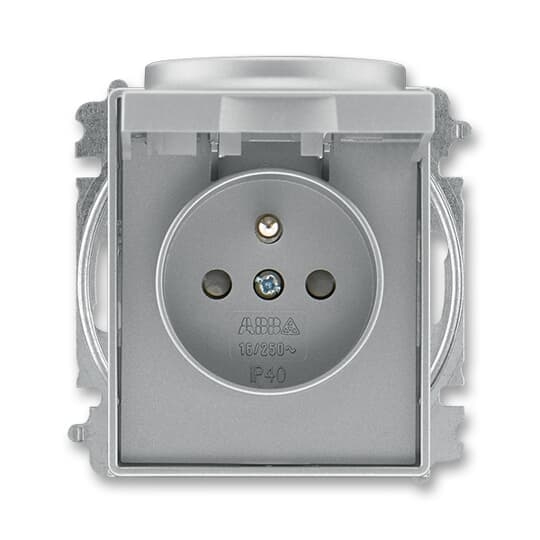 Time®Arbo 6619E-A06397 36 zásuvka jednonásobná s ochranným kolíkem, s clonkami, s víčkem (typ 6619) barva ocelová ABB
