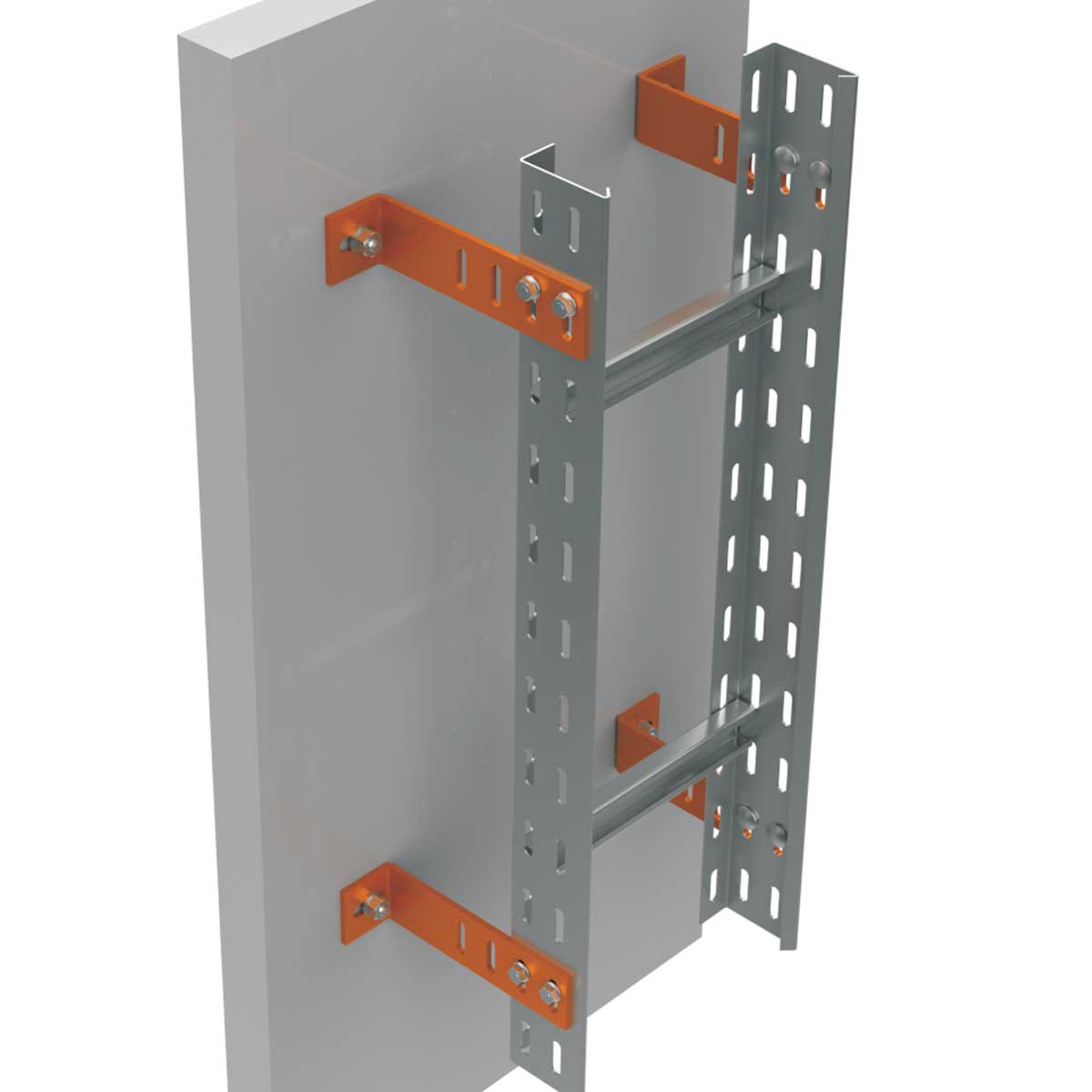 Distanční úchyt umožňující instalaci kabelové lávky přímo na stěnu s nastavitelným odstupem od stěny, vhodné při nerovnostech stěny nebo při používání příchytek kotvených ke spodní části příček