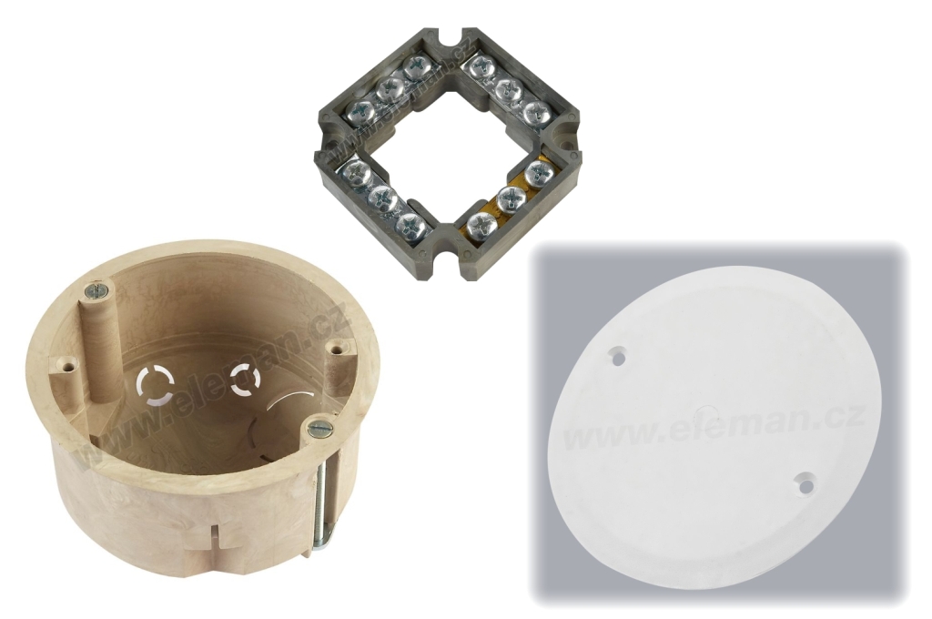 Sada do sádrokartonu UK 68-SK/3 - samozhášivá, průměr 68mm, materiál PVC, montáž do sádrokartonu, obsahuje: krabici, svorkovnici, víčko, vruty.