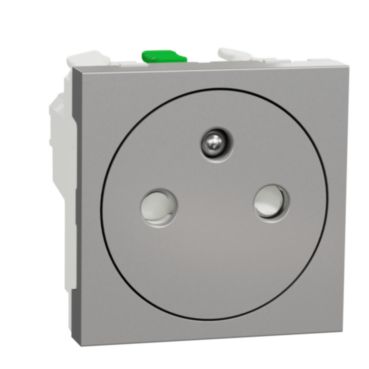 Unica - Zásuvka skrytá 250V/16A 2P+E, clonky, bezšroubová, Aluminium *NU305230E