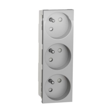 Unica - Zásuvka trojitá 45 250V/16A 3x2P+E, clonky, bezšroubová, Aluminium *NU307930