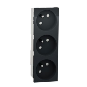 Unica - Zásuvka trojitá 45 250V/16A 3x2P+E, clonky, bezšroubová, Antracit *NU307954
