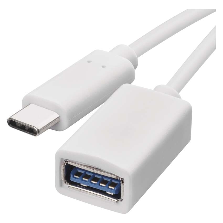 Datový OTG kabel USB-A 3.0 / USB-C 3.0  s funkcí redukce, 15 cm, bílý == barva: bílá|délka: 0,15 m|konektory: A zásuvka – C vidlice s funkcí OTG|materiál: PVC|použití: data|prodejní obal: 1 ks, krabička|rychlost přenosu dat: 10 Gbit/s (SuperSpeed+)|USB verze: 3.0