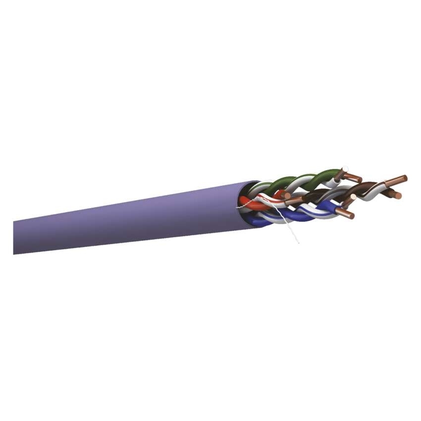 Datový kabel UTP CAT 5E LSZH, 305m == AWG: 24|barva pláště: fialová (RAL 4005)|délka: 305 m|izolace vodičů: HDPE|kategorie: 5E|konstrukce kabelu: drát|materiál vnitřního vodiče: měď (Cu)|maximální provozní vlhkost: 93 %|montážní teplota: +5 °C až +60 °C|nebezpečné látky: žádné|nejvyšší podporovaný protokol: 1000 Base-T (Gigabit Ethernet)|osazené konektory: ne|plášť kabelu: LSZH|plášť se sníženou kouřivostí LSZH (LS0H): ano|počet vodičů: 8|použití: neuvádí se|prodejní obal: 305 m, papírová krabice|produkt: UTP kabel bez konektorů|průměr kabelu: 5,2 mm|průměr vnitřního vodiče: 0,50 mm|skladovací teplota: -20 °C až +60 °C|stínění: ne|tahový prvek: Nylon 150D|tloušťka izolace vodičů: 0,22 mm|tloušťka pláště: 1,1 mm|třída reakce na oheň: Dca–s2–d2–a1|typ: UTP CAT 5E LSZH|typ ochrany konektorů: ne|určeno pro kabel: neuvádí se|záruční doba: 10 let|značení kabelu: UTP Cat5E LSZH 1 – 305 m
