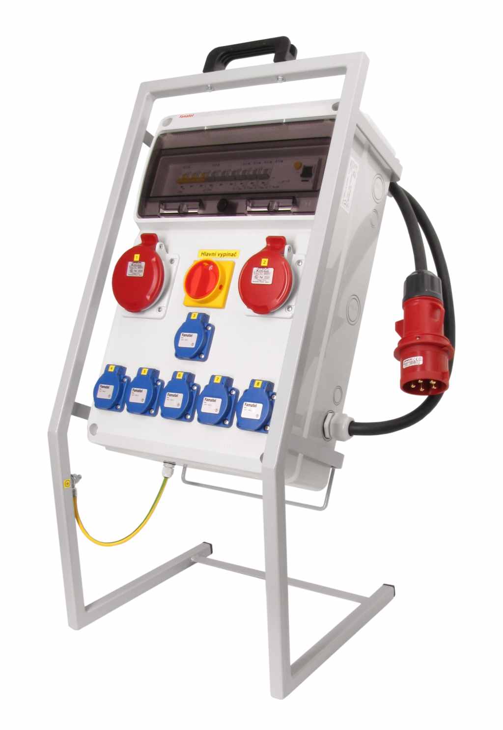 Zásuvková skříň FAMATEL v302521-ZSFV60101000.1 /3952 IP44 jištěná s chráničem 40/4/003, zásuvky 6x230V, 1x16/5, 1x32/5, přístroje EATON 10kA: 3xPL7-B16/1, 1xPL7-B16/3, 1xPL7-B25/3, stojan, vidlice 32/5, PF7-40/4/003 na vstupu, použité pouzdro: 3952 - 500x330x155mm, barva: světle šedá.