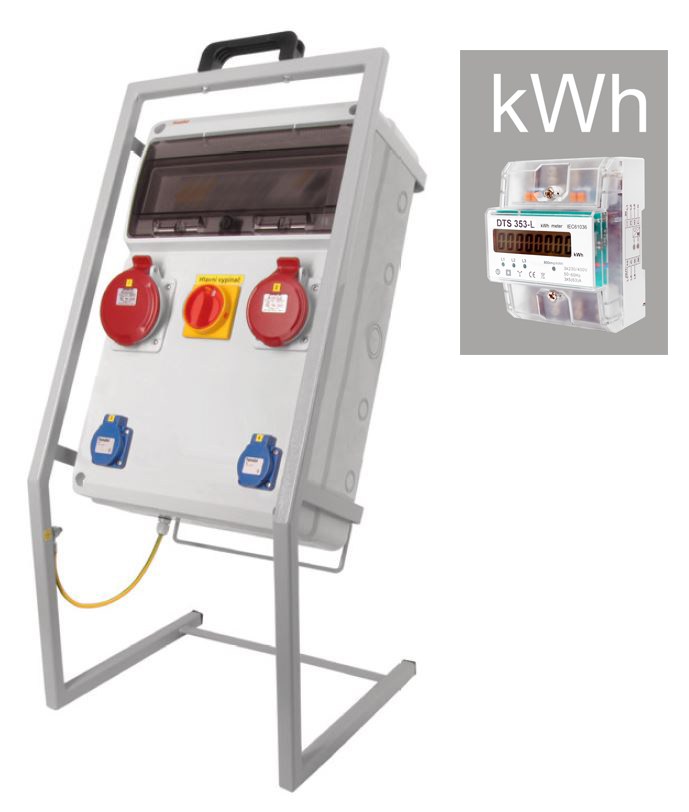 Zásuvková skříň FAMATEL v440292-ZSFV20101000.1 /3952 IP44 jištěná s chráničem 40/4/003, zásuvky 2x230V, 1x16/5, 1x32/5, přístroje EATON 10kA: 1xPL7-B16/1, 1xPL7-B16/3, 1xPL7-B32/3, hl. vyp. 40A, elektroměr, HLAK 25mm2, stojan, PF7-40/4/003 na vstupu, použité pouzdro: 3952 - 500x330x155mm, barva: světle šedá.