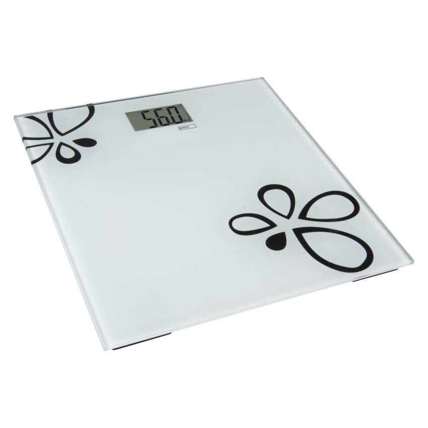 Digitální osobní váha EV105 == automatické vypnutí: po 10 sekundách|barva: bílá|Bluetooth: ne|BMI index – měření tuku, vody a svalové hmoty: ne|funkce dovažování: ne|indikace slabých baterií: ano|indikátor přetížení: ne|jednotky váhy: kg, lb, St|LCD displej: ano|max. zátěž: 180 kg|napájení: 1× 3 V CR2032 (součástí balení)|paměť: ne|podsvícený displej: ne|povrch váhy: tvrzené sklo|přesnost vážení: 100 g|prodejní obal: 1 ks, krabice|produkt: osobní váha|rozměr: 20 × 300 × 300 mm