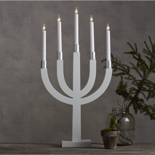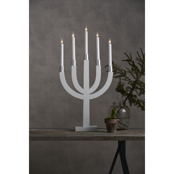 Vánoční osvětlení svícen ELIÁŠ 5x žárovek E10 výška 67cm bílý dekorativní dřevěný napájení 230V *218-84 Star trading