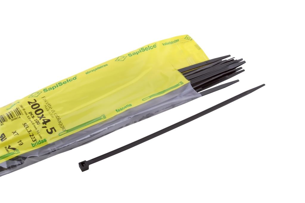 Vázací (stahovací) pásky 200x4,5mm - černá, PA 6.6, (bal.=100ks), SEL.3.223.
