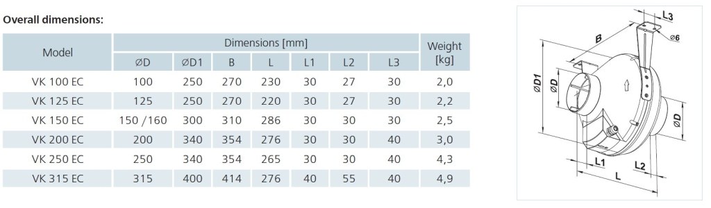 Ventilátor VENTS VK 100 EC potrubní s EC motorem *1010250 eleman