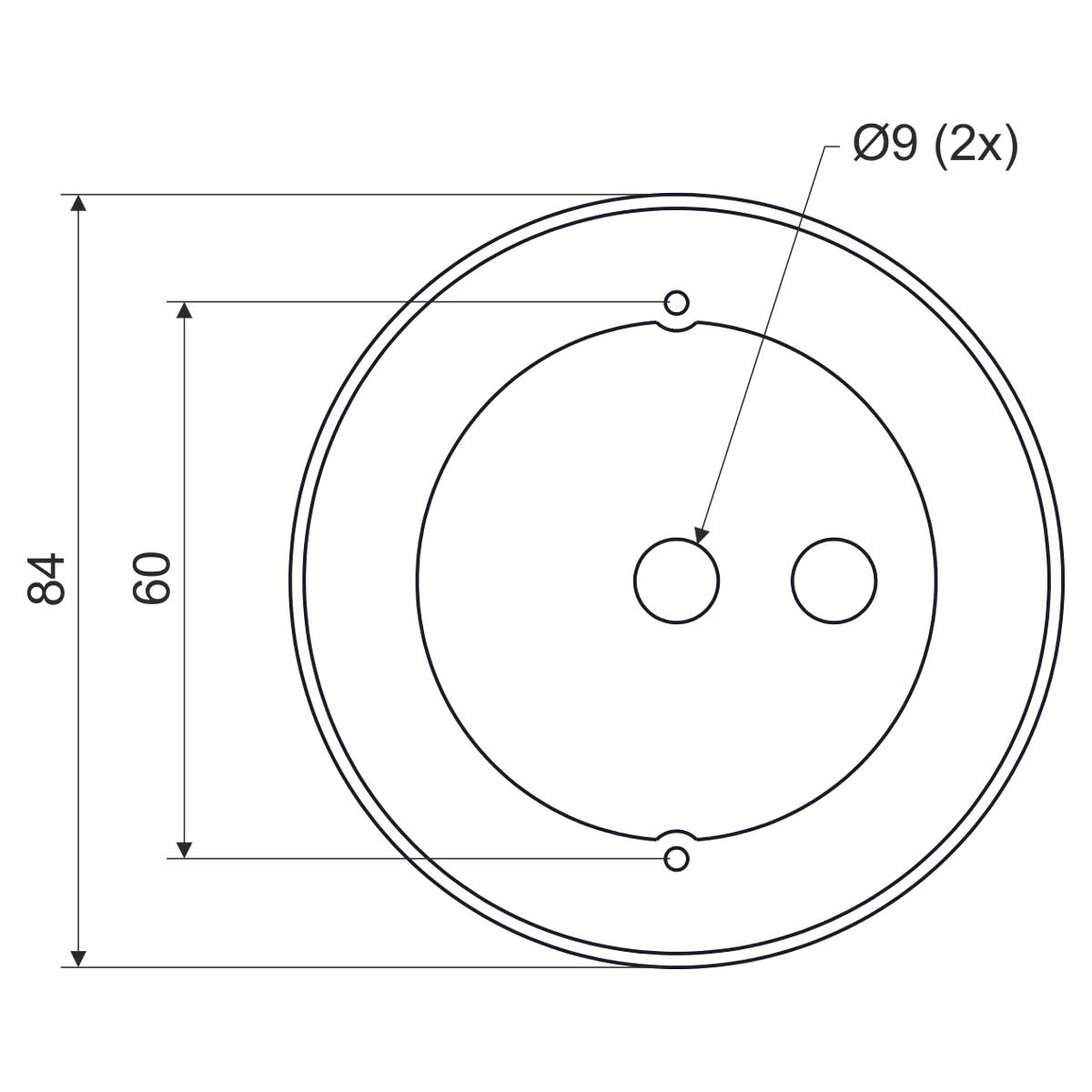 V 68 S - VÍČKO KBL, konfigurace HB, barva SUPERBÍLÁ/RAL9003, balení - 10/120 ks  -  pro uzavření krabice s lustrhákem, zajišťuje krytí IP 20, dva otvory umožňují protažení přívodu ke světlu a montáž lustrháku, připevnění pomocí vrutů 2,9x13 (nejsou součástí balení)