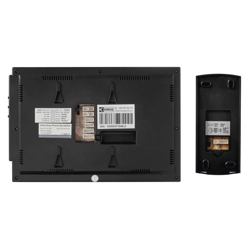 Sada videotelefonu EMOS EM-07HD == antivandal provedení kamerové jednotky: ano|aplikace pro vzdálenou správu: bez aplikace|automatické ukládání snímků: ne|barevný displej: ano|barva: bílá|intercom: ano|krytí kamerové jednotky: IP44|montáž: na stěnu|možnost připojení CCTV kamer: ano|napájení kamerové jednotky: z monitoru|napájení monitoru: 12 V DC (součástí balení)|ovládání pojezdu brány: ano|ovládání zámku: ano|počet melodií: 12|počet tlačítek kamerové jednotky: 1|počet vodičů (monitor/zámek/brána): 4+0+2|požadovaná kabeláž: FTP nebo SYKFY 5 × 2 × 0,5|přísvit kamery: ano, do 150 cm|prodejní obal: 1 ks, krabice|regulace hlasitosti: ano|rozměr kamerové jednotky: 64 × 46 × 145 mm|rozměr monitoru: 233 × 23 × 160 mm|složení sady: 1× dveřní kam. jednotka, 1× LCD, zdroj|snímací prvek kamery: 1/3 CCD Pinhole s IR přísvitem|úhel záběru kamery: 80°|velikost displeje: 7"|záruční doba: 2 roky|zdroj součástí balení: ano