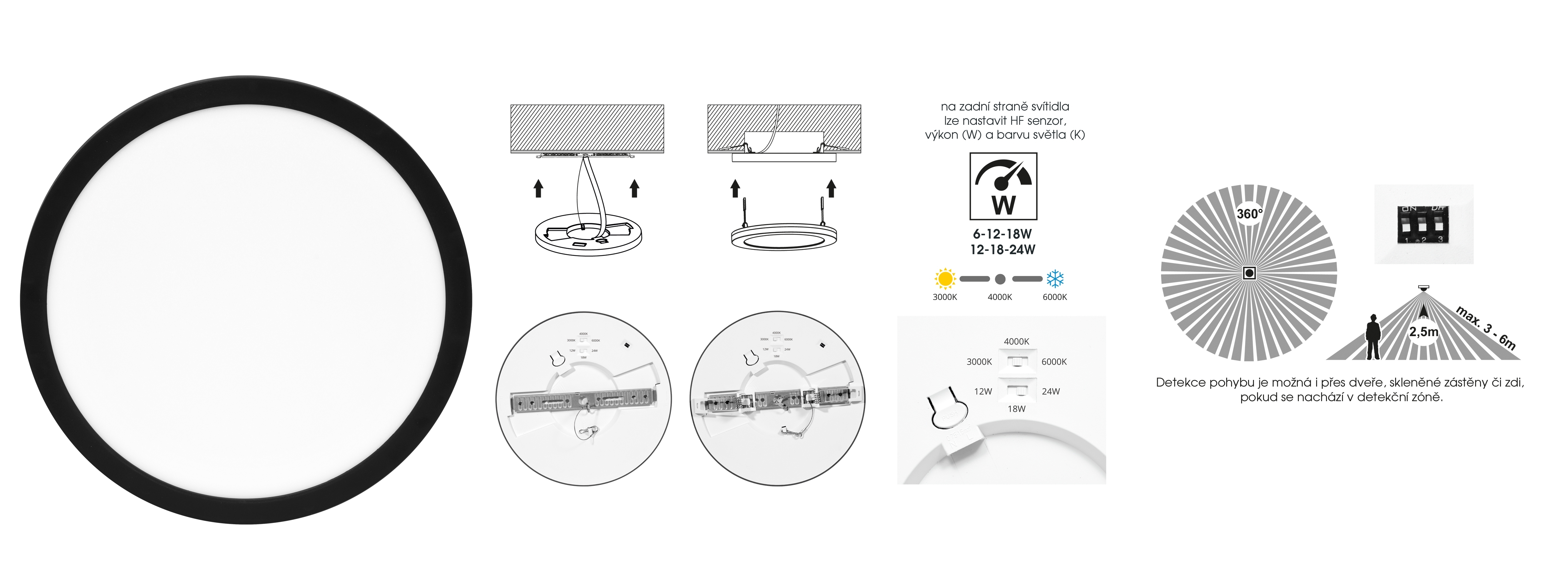WPCB2-18W/HF/CR SMD kruh 22,5cm vč. HF,6/12/18W,CCT,1880lm,černá ecolite