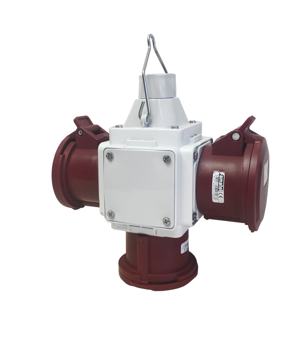 Zásuvkový box závěsný FAMATEL PowerBOX pb588 IP44 3x400V/32A/5 přímá, pouzdro: rozměr 193x104x104mm, barva: světle šedá, IK08, rozměrová a tvarová stálost -15°C +40°C,  zkouška žhavou smyčkou 650°C, materiál Polyamid, aplikované normy EN 60670-22.