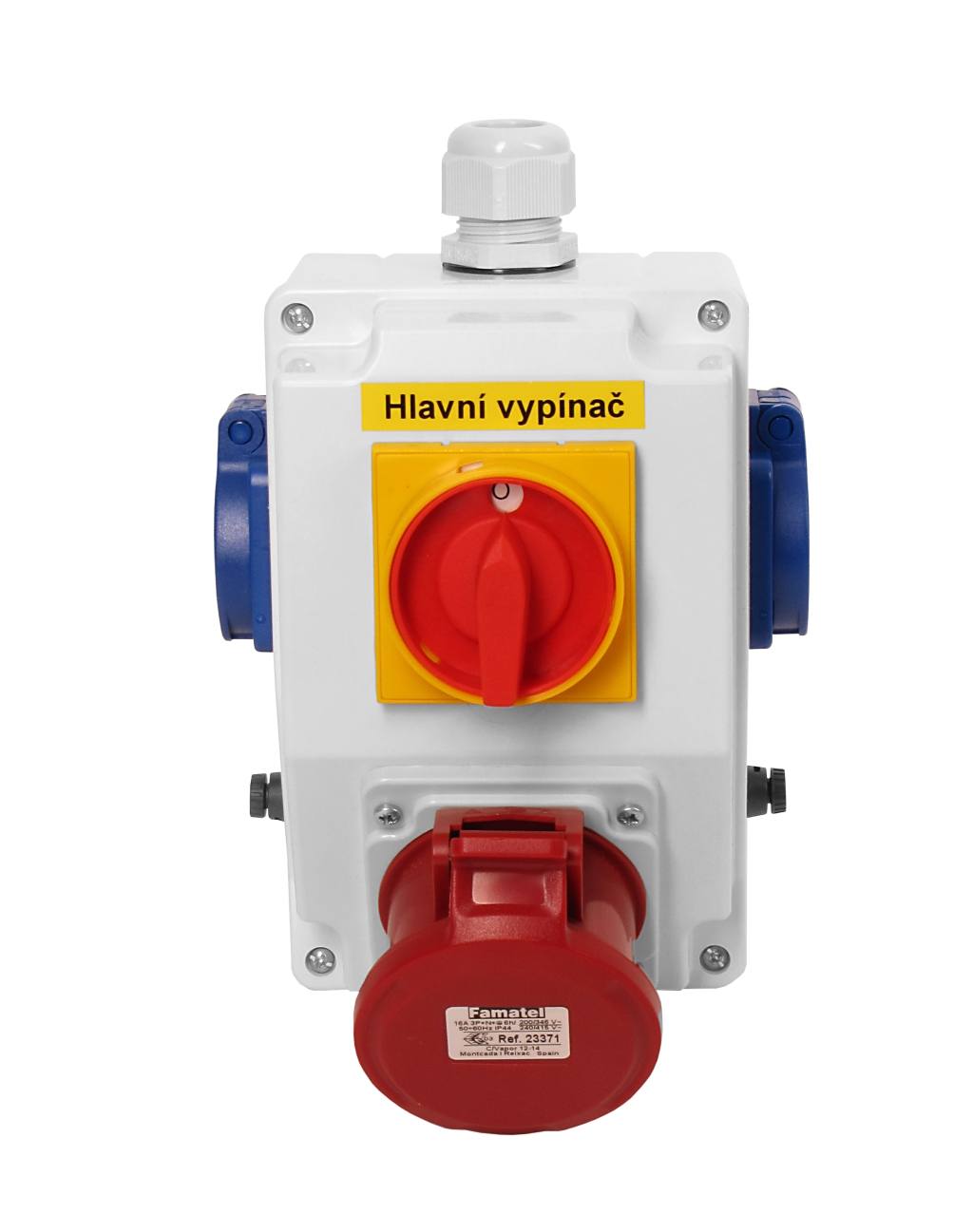 Zás. krabice s hl. vypínačem 0-1 sb220 IP44 2x230V/16A, 1x400V/16A/5 Famatel