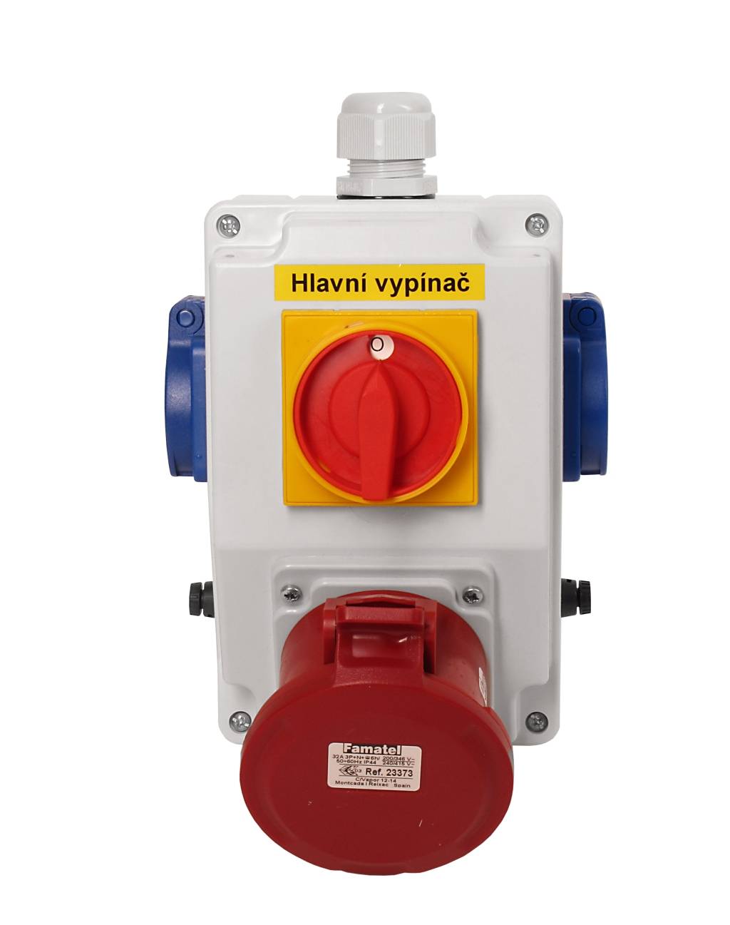 Zás. krabice s hl. vypínačem 0-1 sb225 IP44 2x230V/16A, 1x400V/32A/5 Famatel