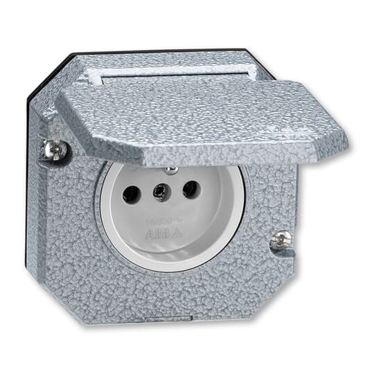 Zásuvka jednonásobná vestavná s víčkem, Al, IP55; šedá   Vhodné pro designy z vypínačových řad ABB : Garant   Objednací číslo : 5518-2790