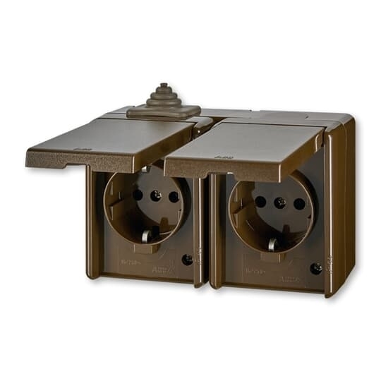 Zásuvka dvojnásobná IP44, s ochr. kontakty (podle DIN), s víčky *5518-3029 H hnědá ABB