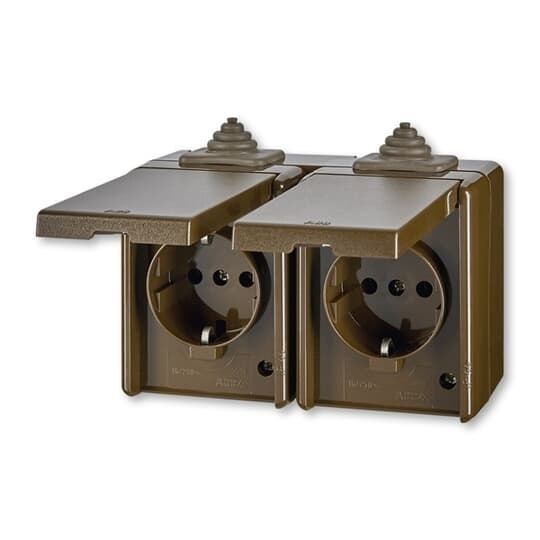Zásuvka dvojnásobná IP44, s ochr. kontakty (podle DIN), s víčky *5518-3069 H hnědá ABB