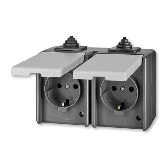 Zásuvka dvojnásobná IP44, s ochr. kontakty (podle DIN), s víčky *5518-3069 S šedá ABB