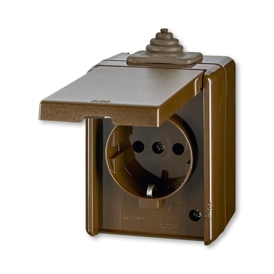 Zásuvka jednonásobná IP44, s ochr. kontakty (podle DIN), s víčkem *5518-3929 H hnědá ABB