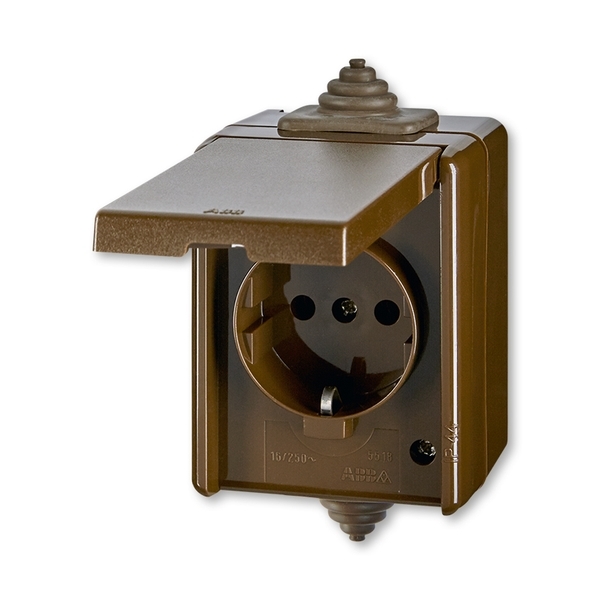 Zásuvka jednonásobná IP44, s ochr. kontakty (podle DIN), s víčkem *5518-3969 H hnědá ABB