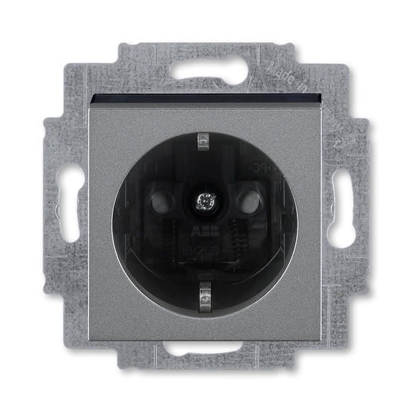 Zásuvka jednonásobná s ochrannými kontakty (podle DIN), s clonkami, bš.; ocelová/kouř. černá   Vhodné pro designy z vypínačových řad ABB : HM   Objednací číslo : 2CHH203457A6069