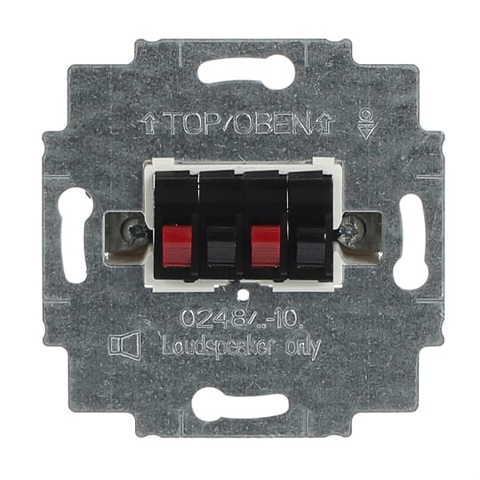 Zásuvka reproduktorová stereofonní; černá; 0248/05-101   Vhodné pro designy z vypínačových řad ABB : T,H,E,F,Fu,S,Ax,A,I   Objednací číslo : 2CKA000230A0404