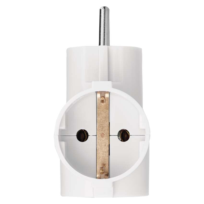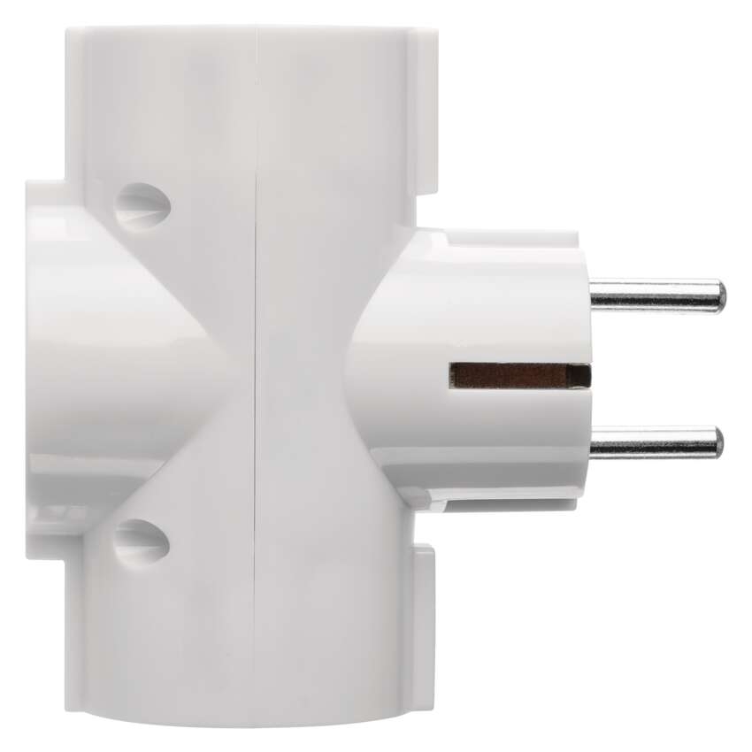 Rozbočovací SCHUKO zásuvka 3× kulatá == barva: bílá|dětské clonky: ne|krytí: IP20|materiál: plast|max. zátěž: 2 300 W|napětí/proud: 250 V~/10 A max.|počet pólů: neuvádí se|počet zásuvek: 3× 2P + PE|prodejní obal: 1 ks, závěs|produkt: rozbočovací zásuvka 3×|typ: SCHUKO|vypínač: ne