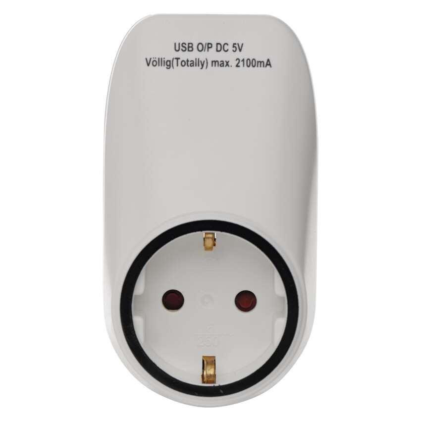 Zásuvka s 2× USB SCHUKO == barva: bílá|dětské clonky: ano|krytí: IP20|materiál: plast|max. zátěž: 3 680 W|napětí/proud: 250 V~/16 A max.|počet pólů: neuvádí se|počet zásuvek: 1× 2P + PE + 2× USB 5 V DC max. 2 100 mA|přenosoná frekvence: neuvádí se|prodejní obal: 1 ks, závěs|produkt: zásuvka s USB|typ: SCHUKO|typ: neuvádí se|vypínač: ne