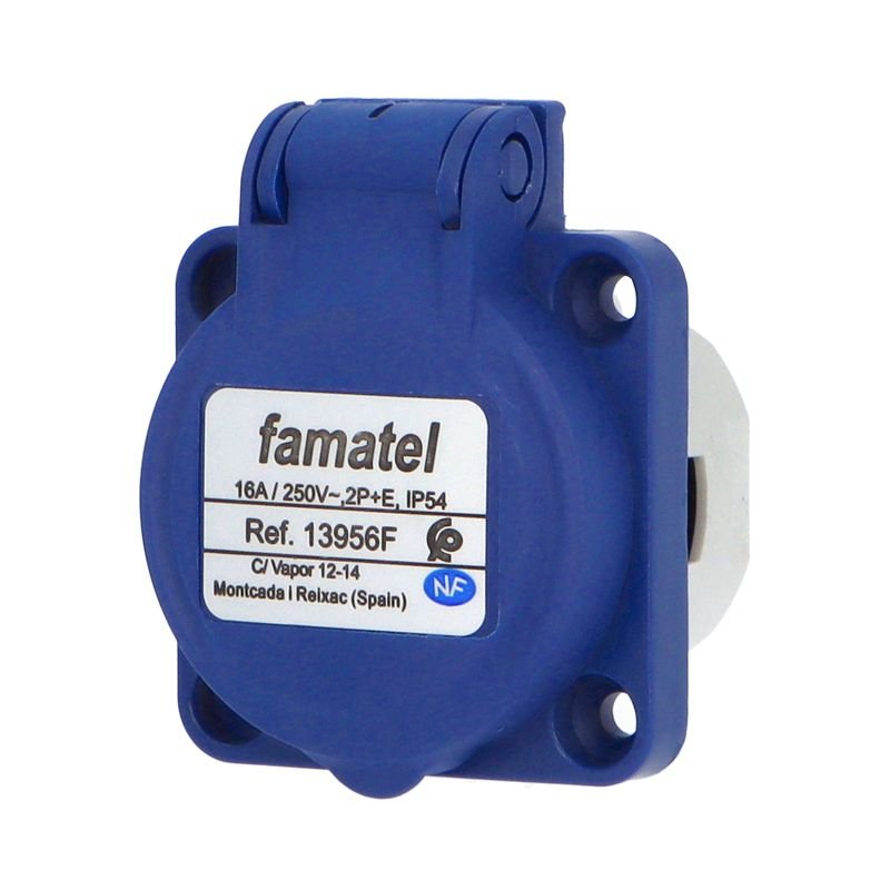 Zásuvka vestavná 13956F IP54/230V/16A s ochranným kolíkem, modrá (smyčkovací) Famatel