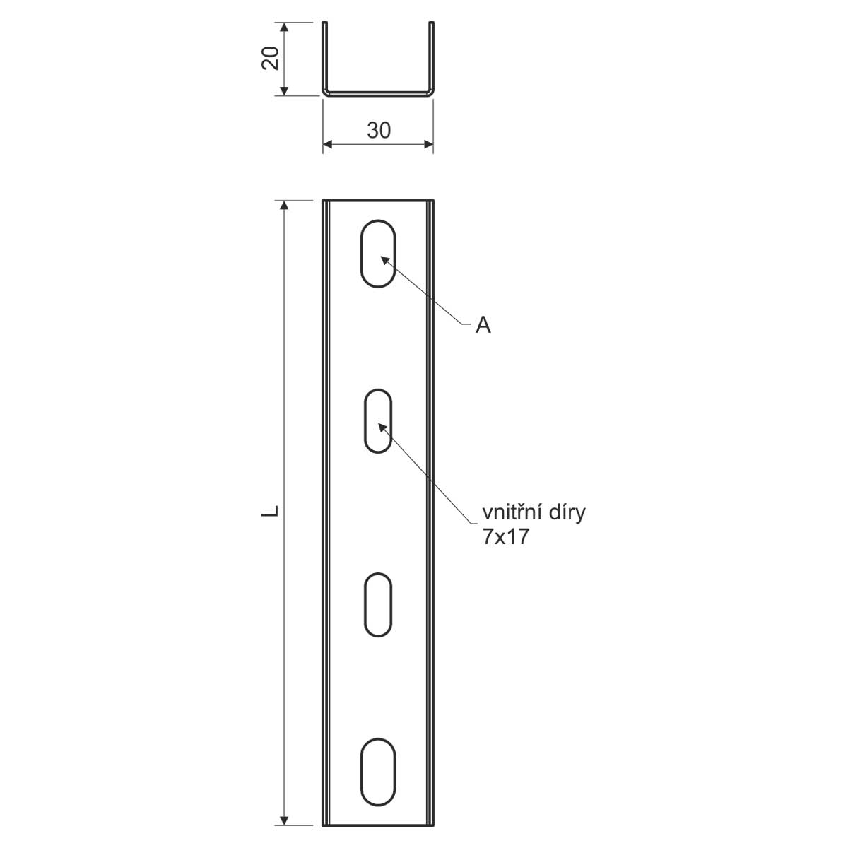 Závěs pro zavěšení kabelových tras o šířce 500 mm pro zavěšení pomocí dvou závitových tyčí, povrchová úprava sendzimir