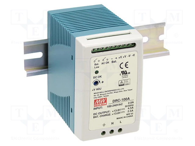 Zdroj spínaný DRC-100B Napájecí zdroj: spínaný; vyrovnávací,na lištu DIN; 96,6W; 2,25A