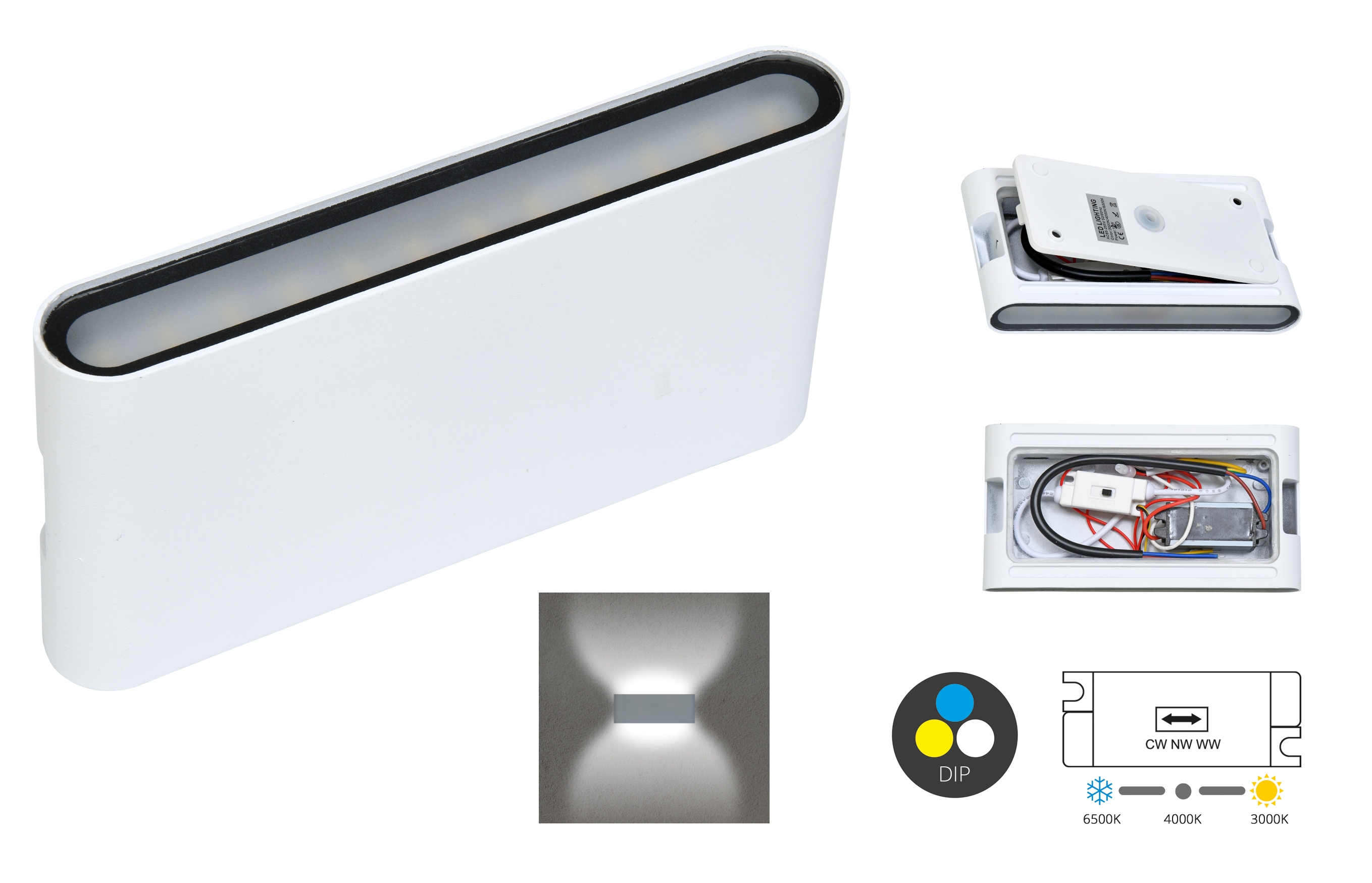 ZFP12-BI SMD fasádní svítidlo 2x6W,800lm,CCT,IP65,bílé ecolite
