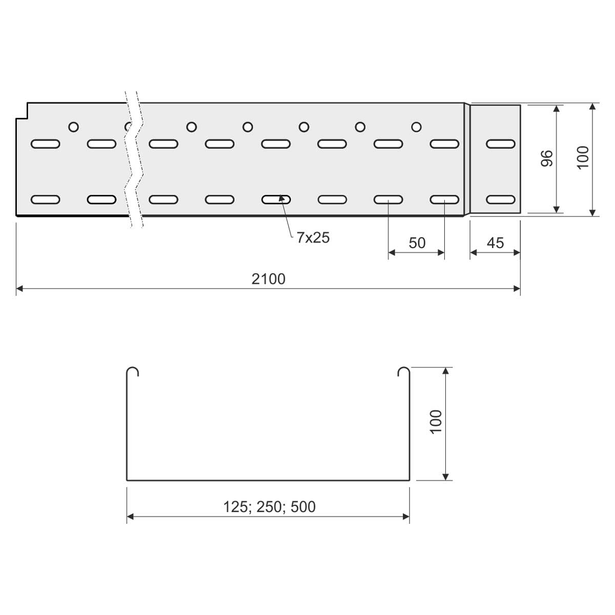 ŽLAB KABEL. S INT.SPOJKOU POZINKOVÁNO SENDZIMIR *NKZI 100X250X1.25_S Kopos