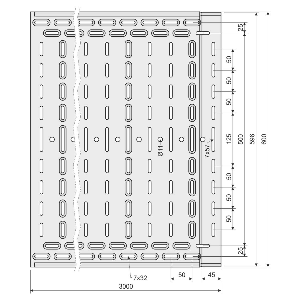 Kabelový žlab s integrovanou spojkou KZI 85x600 z plechu tloušťky 1,25 mm v povrchové úpravě sendzimir, děrovaný, opatřený embosy pro zvýšení pevnosti a tuhosti.