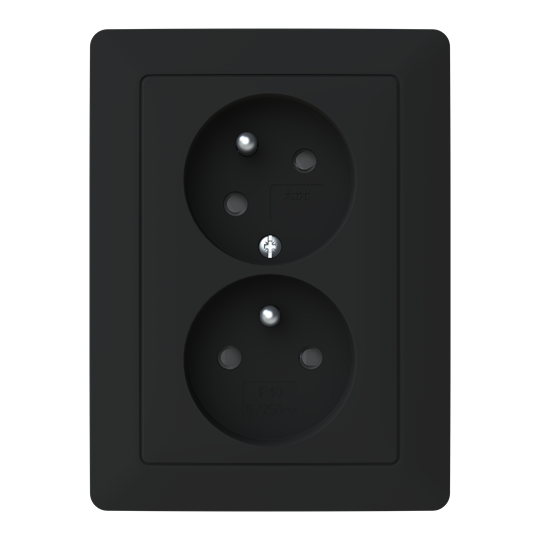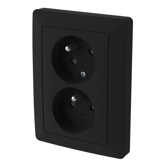 Zoni® 5513T-C02157 237 Zásuvka dvojnásobná s ochr. kolíky, s clonkami, s natočenou dutinou, matná černá 2CHT132157C4237 ABB