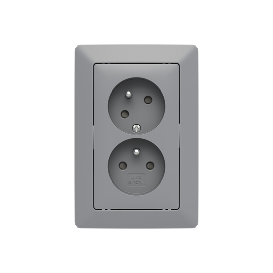 Zásuvka dvojnásobná, s clonkami, s natočenou dutinou; Zoni®, šedá / bílá