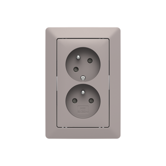 Zásuvka dvojnásobná, s clonkami, s natočenou dutinou; Zoni®, greige / bílá