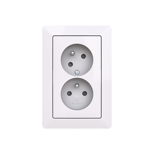 Zásuvka dvojnásobná, s clonkami, s natočenou dutinou; Zoni®, bílá
