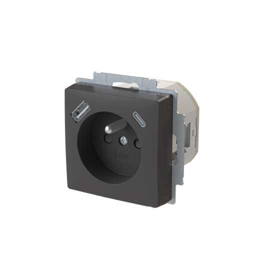 Zoni® 5569T-A32357 237 zásuvka 1násobná s kolíkem, s clonkami, s nabíjením USB-A, USB-C,barva matná černá ABB