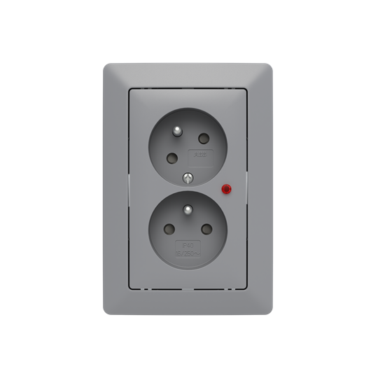 Zásuvka dvojnásobná, s clonkami, s natočenou dutinou, s ochranou před přepětím; Zoni®, šedá / bílá