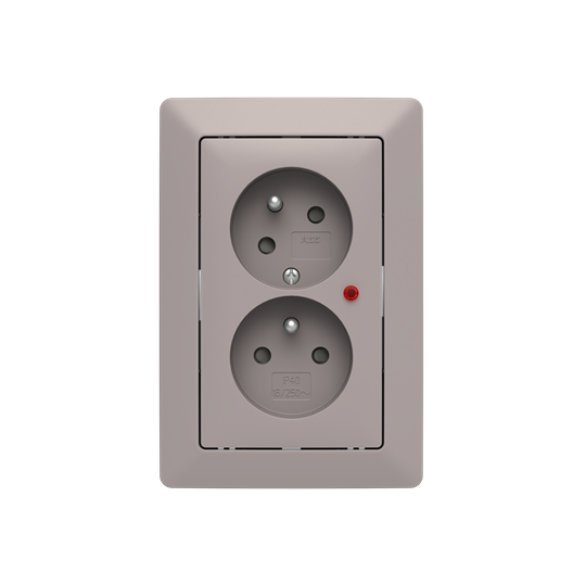Zásuvka dvojnásobná, s clonkami, s natočenou dutinou, s ochranou před přepětím; Zoni®, greige / bílá