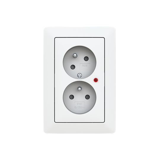 Zásuvka dvojnásobná, s clonkami, s natočenou dutinou, s ochranou před přepětím; Zoni®, matná bílá