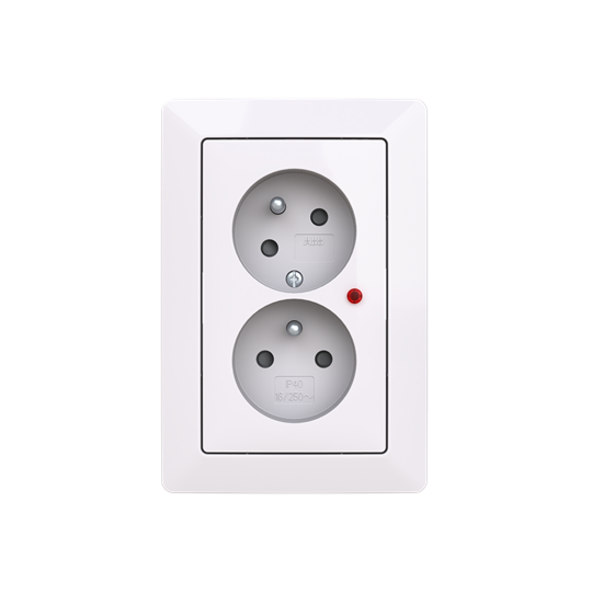 Zásuvka dvojnásobná, s clonkami, s natočenou dutinou, s ochranou před přepětím; Zoni®, bílá
